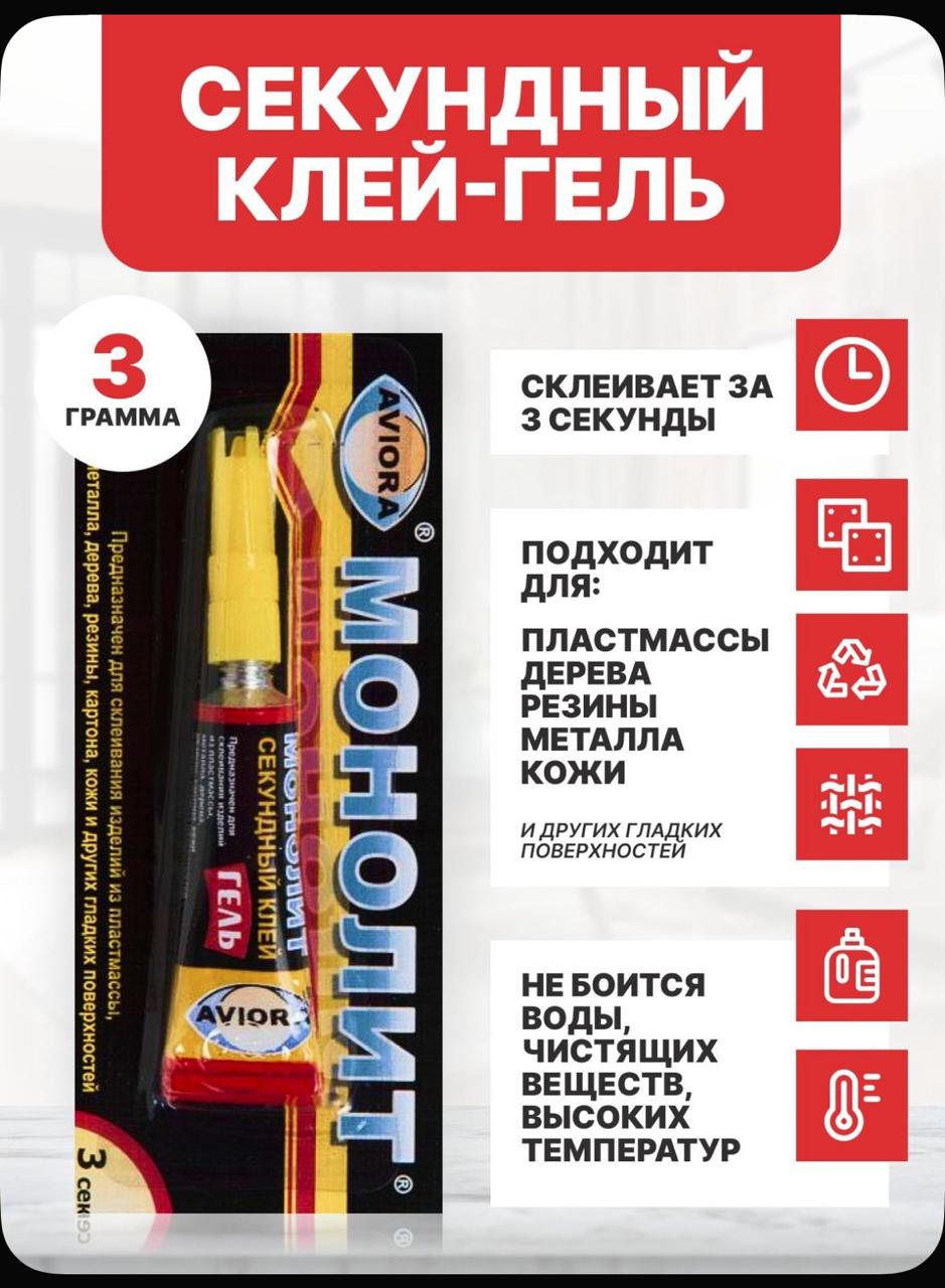 Суперклей-гель 3гр Монолит блистер-карта 12/288 – купить хозяйственные товары в розницу с доставкой