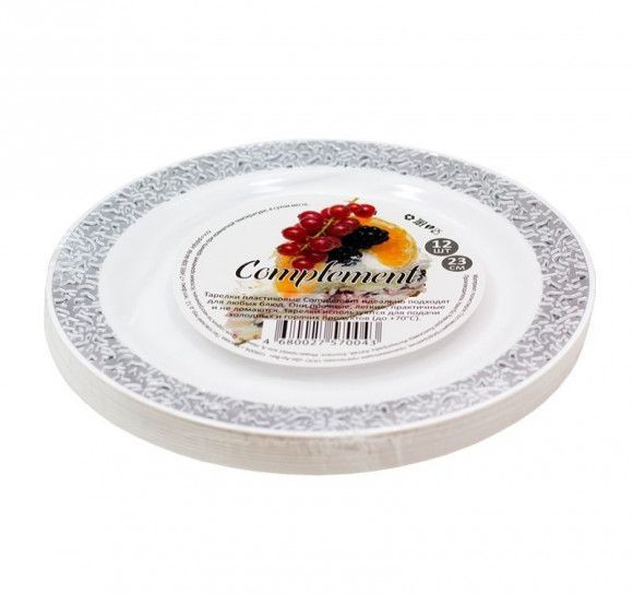Тарелка пластиковая d-230 белая с серебряной ажурной каймой Compliment ламинированная (12шт) 1/20 купить в Казани с доставкой - УПАК.РФ
