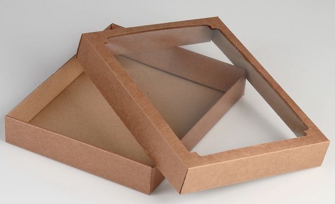 Коробка с окном 275х215х43мм картонная бурая 1/5/25 купить оптом и розницу с доставкой в Казани