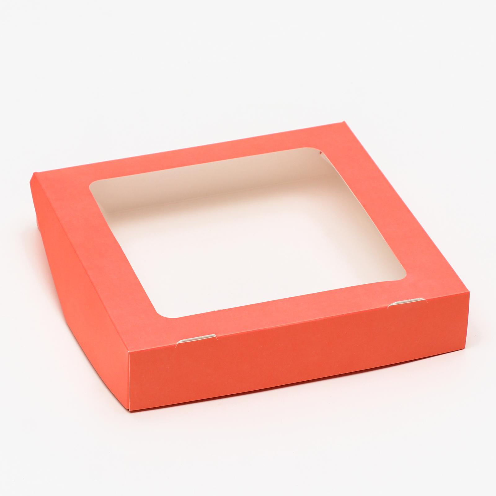 Коробка с окном 200х200х40мм картонная коралловая 1/20/300 купить оптом и розницу с доставкой в Казани
