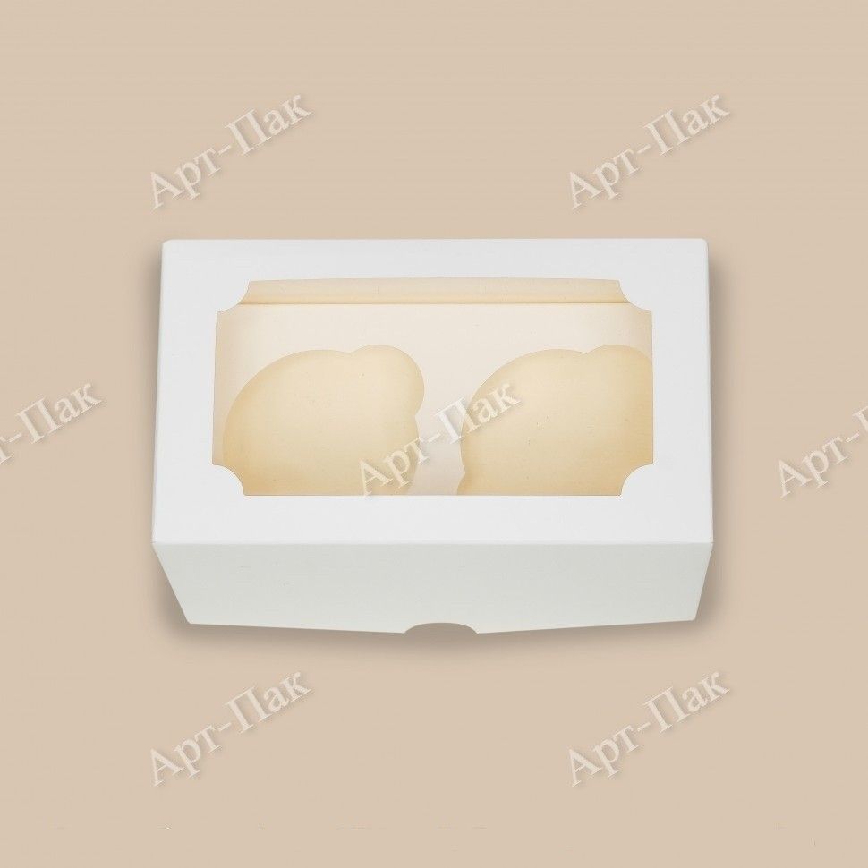 Коробка для капкейков/маффинов с окном 160х100х100мм на 2шт картон белая 50/200 купить оптом и розницу с доставкой в Казани