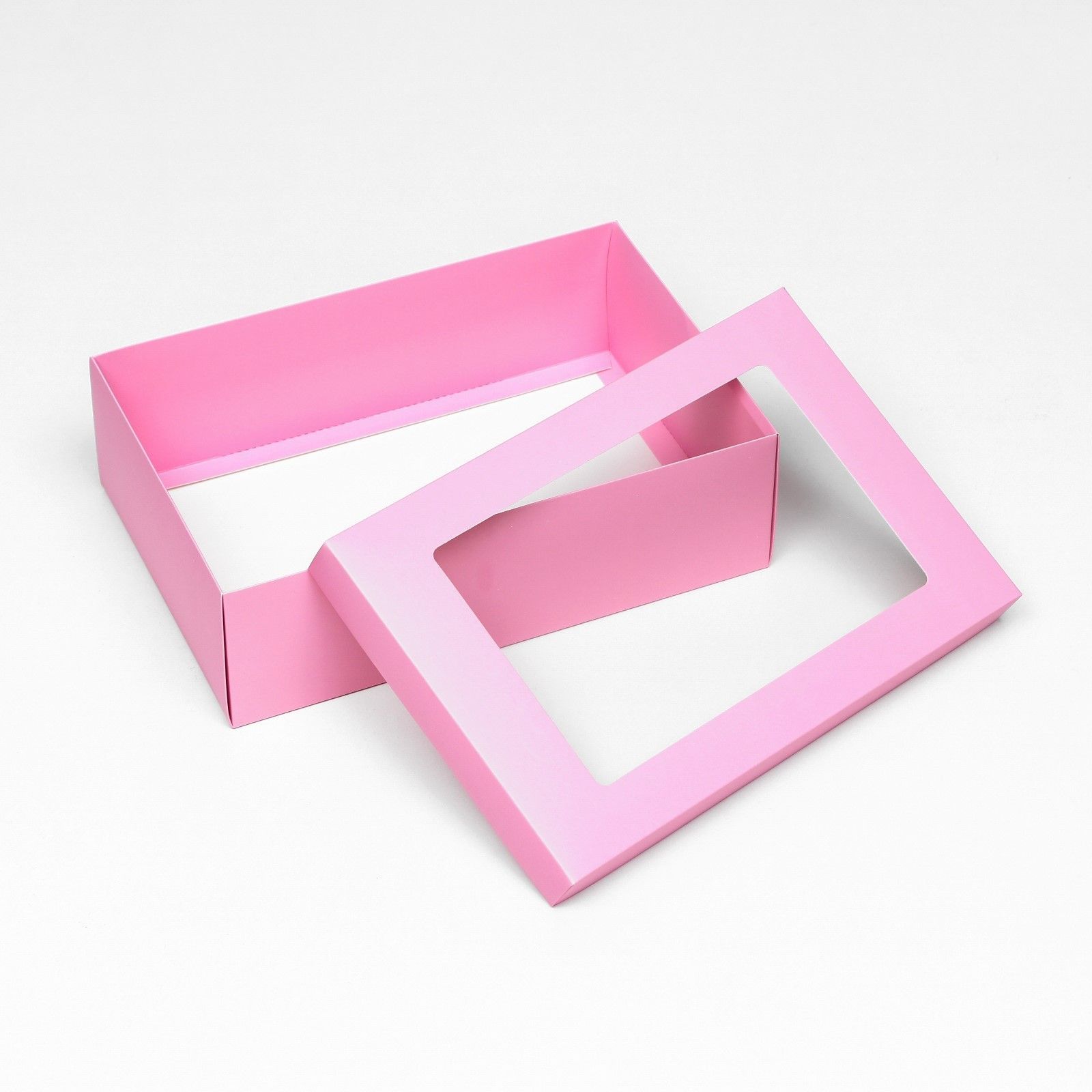 Коробка с окном 300х200х90мм картонная розовая 1/5 купить оптом и розницу с доставкой в Казани