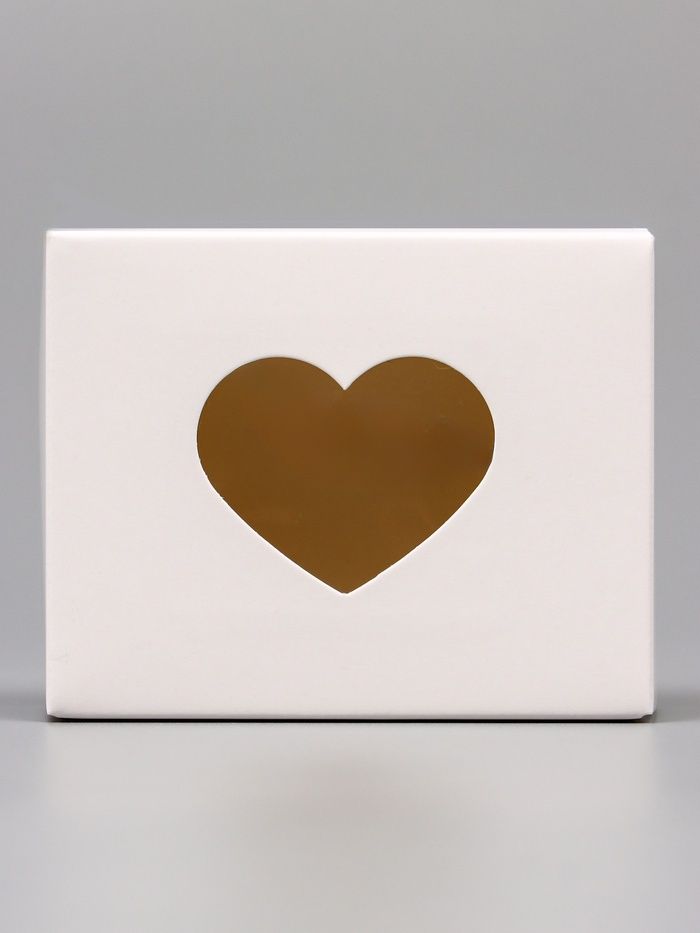 Коробка с окном 100х80х35мм бумажная белая Сердце 1/20/1060 купить оптом и розницу с доставкой в Казани