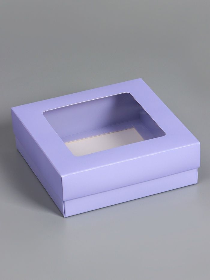 Коробка с окном 150х150х50мм картонная сиреневая 5/350