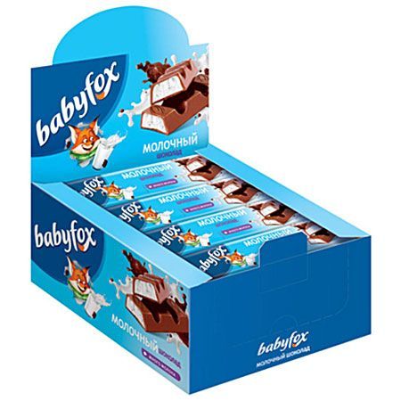 —Продукты, Батончик «BabyFox» шоколадный с молочной начинкой 45 г 1/30