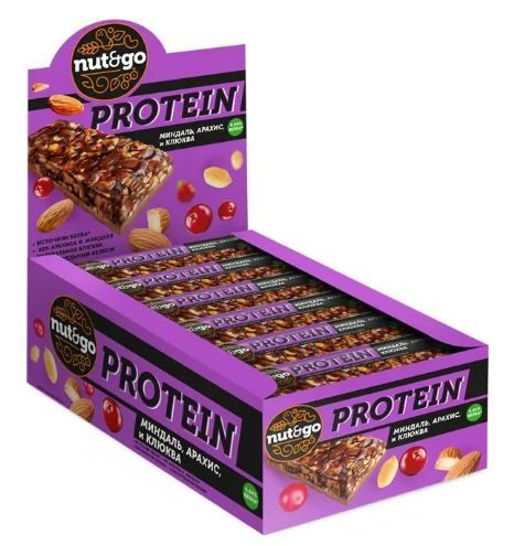 —Продукты, Батончик Nut&Go Protein миндаль арахис клюква 36 г 1/18