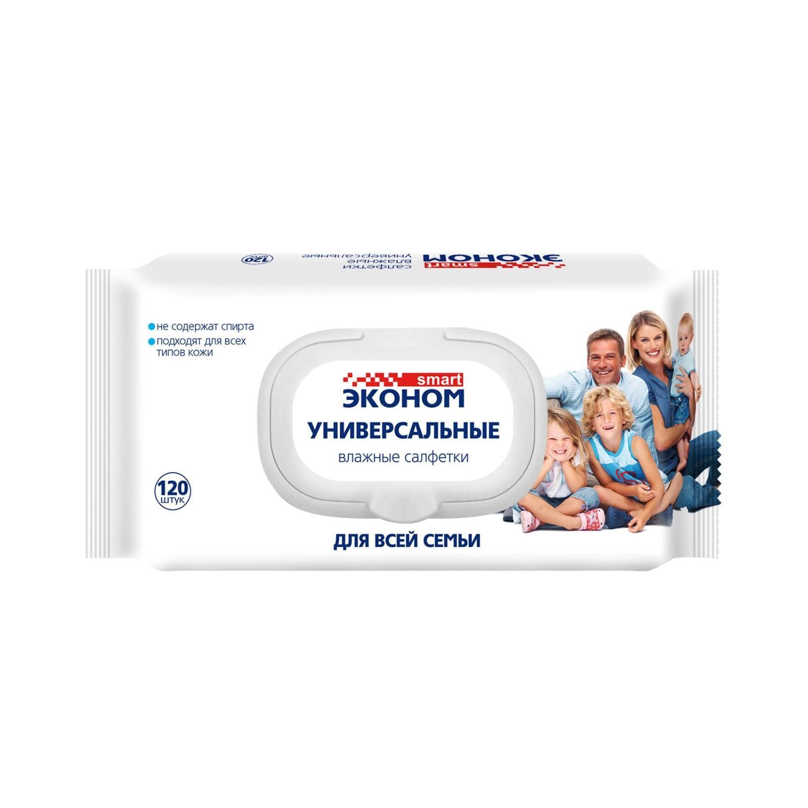 Салфетки влажные Эконом Smart Универсальные клапан для всей семьи (120) 1/16