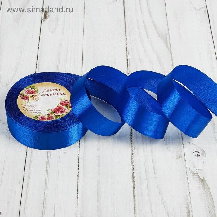 Лента атласная 25мм 25м синяя 5/5 оптом и в розницу в Казани, цены в каталоге с доставкой
