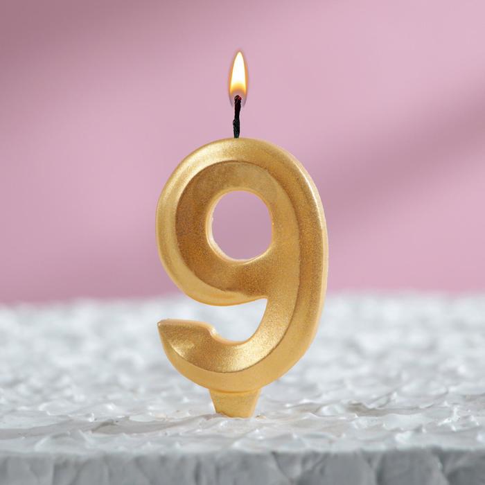 Свеча для торта Грань Цифра 9 золотая 1/100