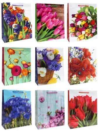 —Пакет подарочный бумажный (26х32х10) ламинир Цветы 1/20