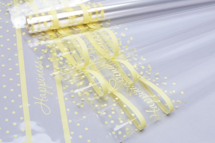 Ролик 70см х10м пленка полипропилен с рисунком Горох желтый 1/10