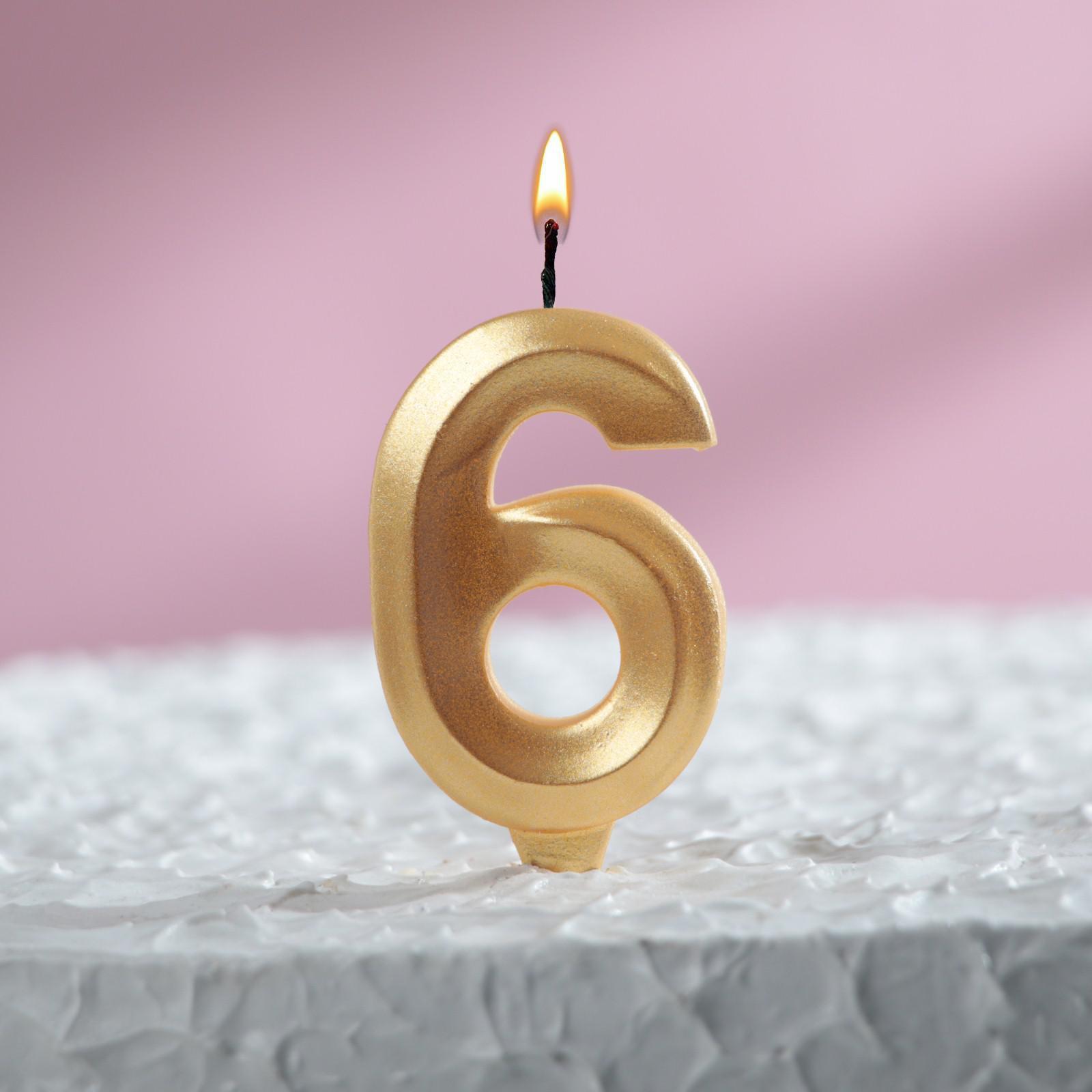 Свеча для торта Грань Цифра 6 золотая 1/100