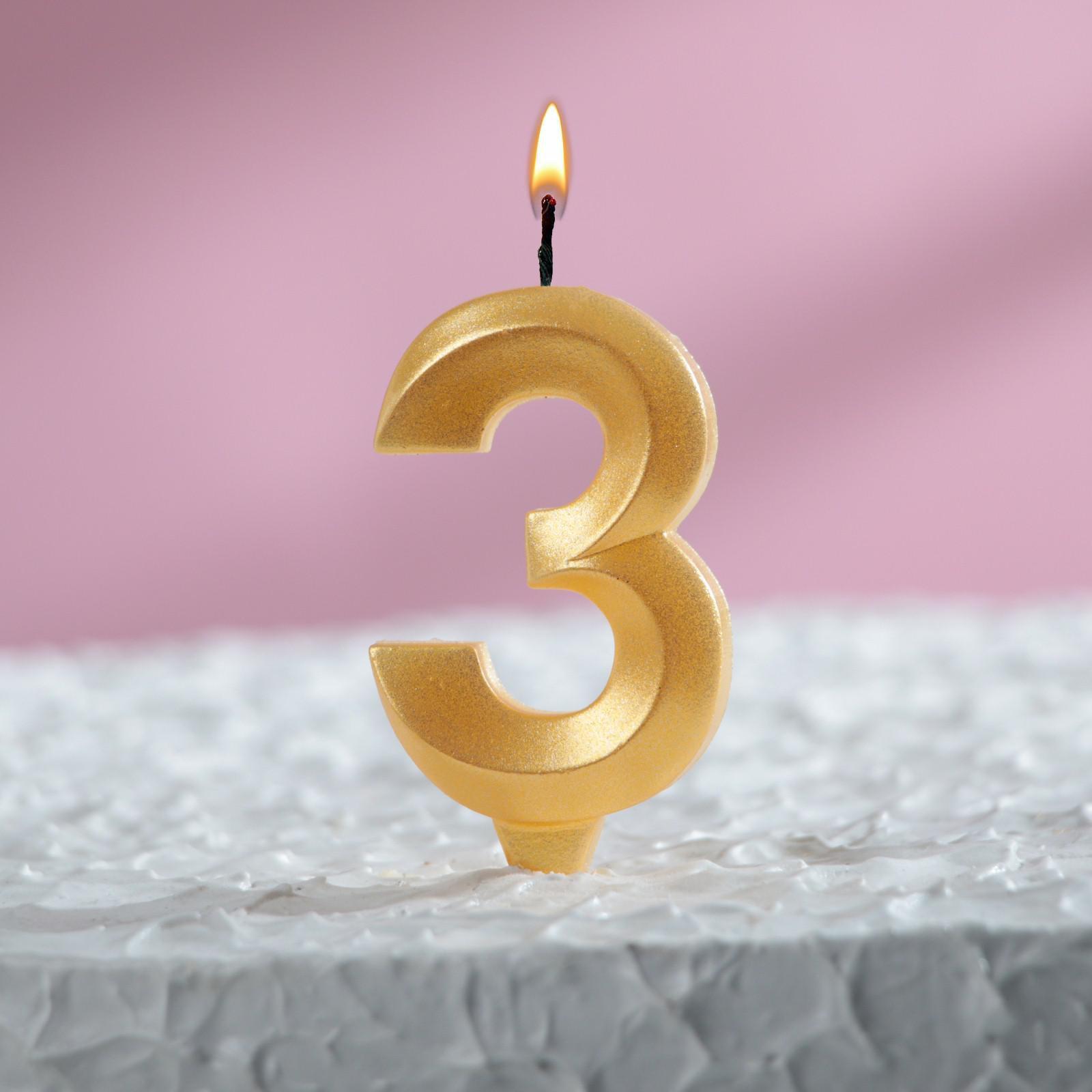 Свеча для торта Грань Цифра 3 золотая 1/100