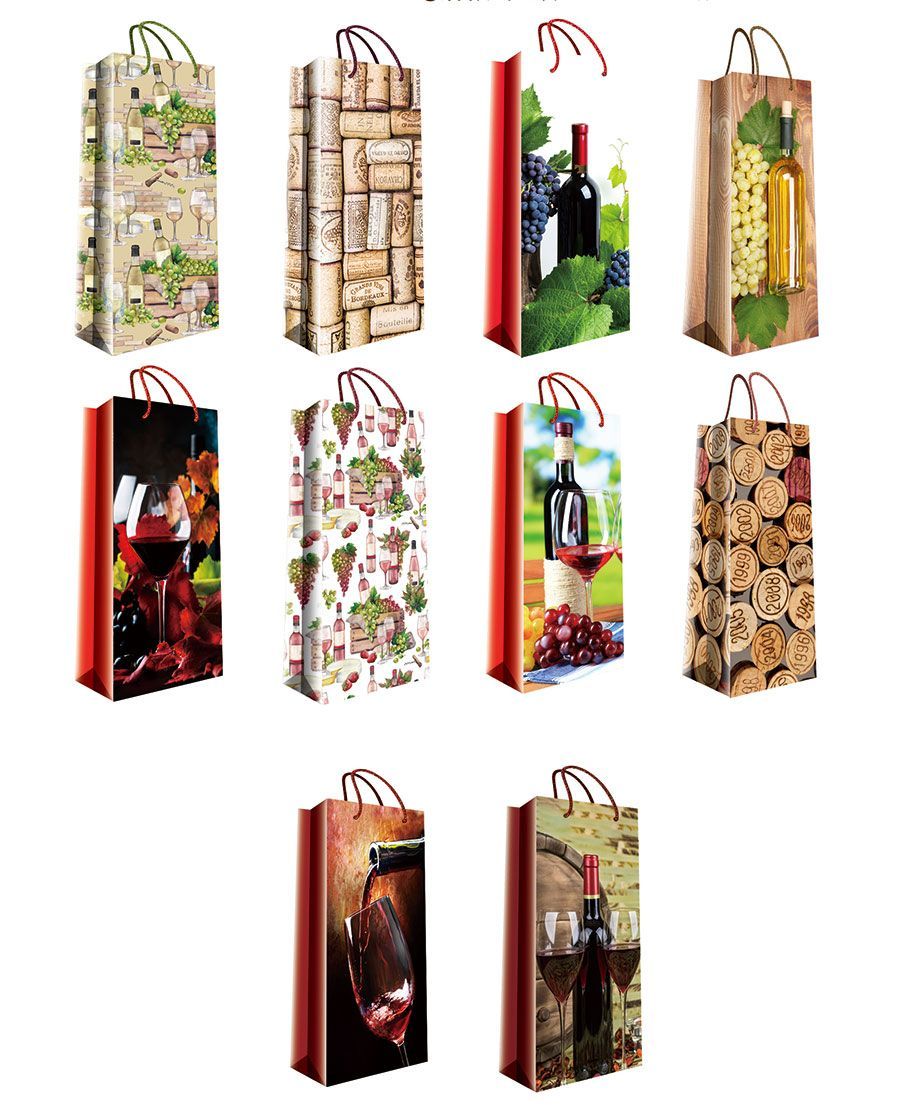 —Пакет подарочный бумажный под бутылку (14х35х11) ламинир Классика 1/20