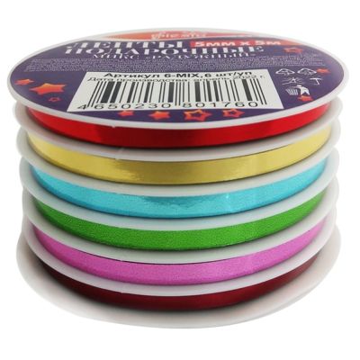 Лента упаковочная 5мм х 5м 6 цветов МИКС 1/60 оптом и в розницу в Казани, цены в каталоге с доставкой