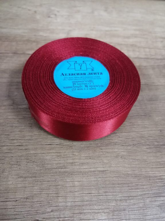 —Лента атласная 25мм 25м вишневая 1/5