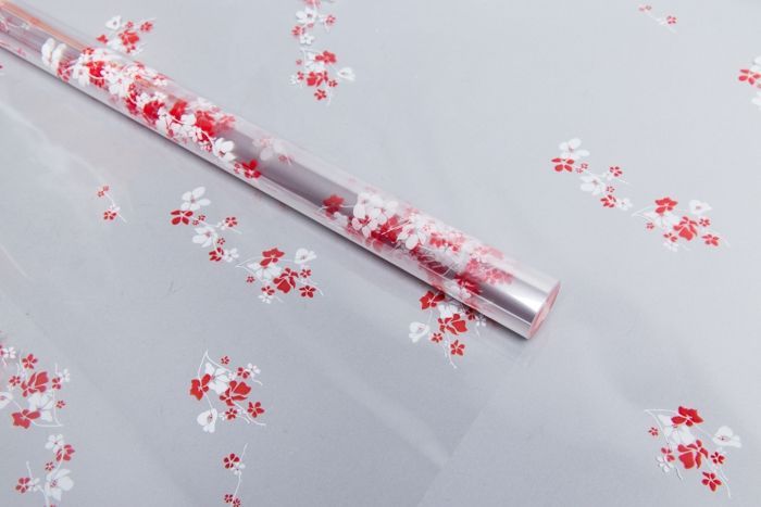 —Ролик 70см х8м пленка полипропилен с рисунком Анютины глазки бело-красный 1/10