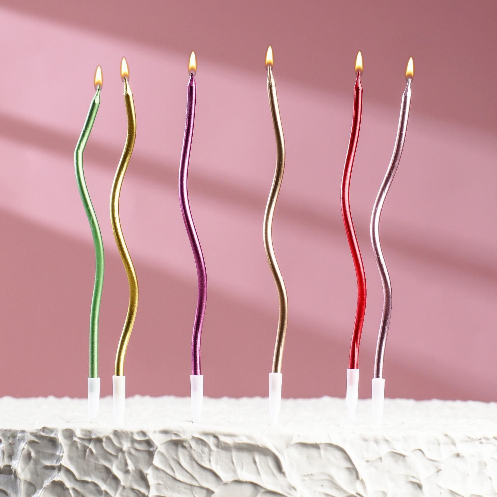 Свечи для торта С Днём Рождения 6 шт коктейльные разноцветные 11см 1/100