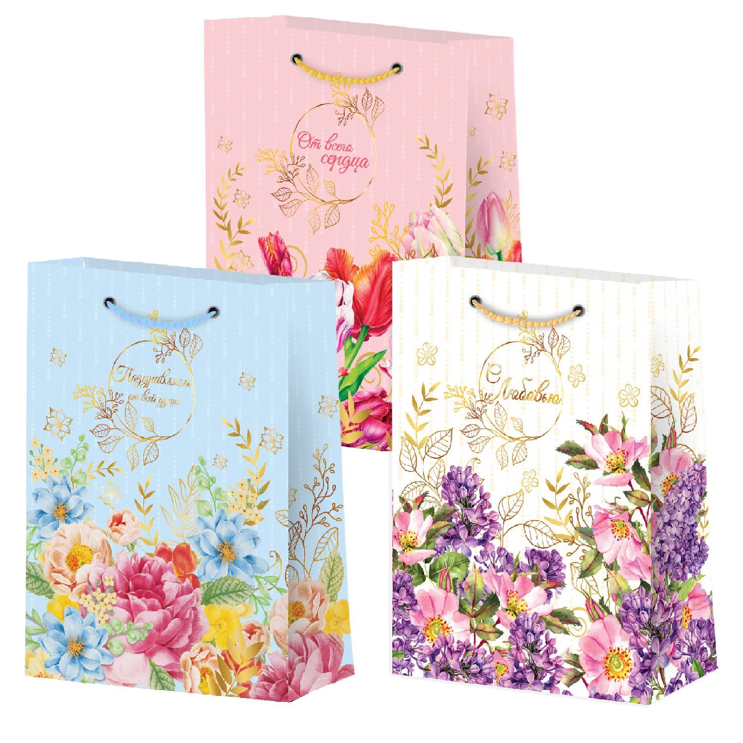 Пакет подарочный бумажный (32,4х44,5х10,2) ламинир микс 1/12/120 оптом и в розницу в Казани, цены в каталоге с доставкой