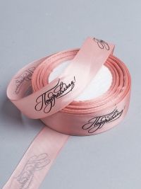 Лента атласная 25мм 25м пепельная роза Поздравляем 1/5 оптом и в розницу в Казани, цены в каталоге с доставкой