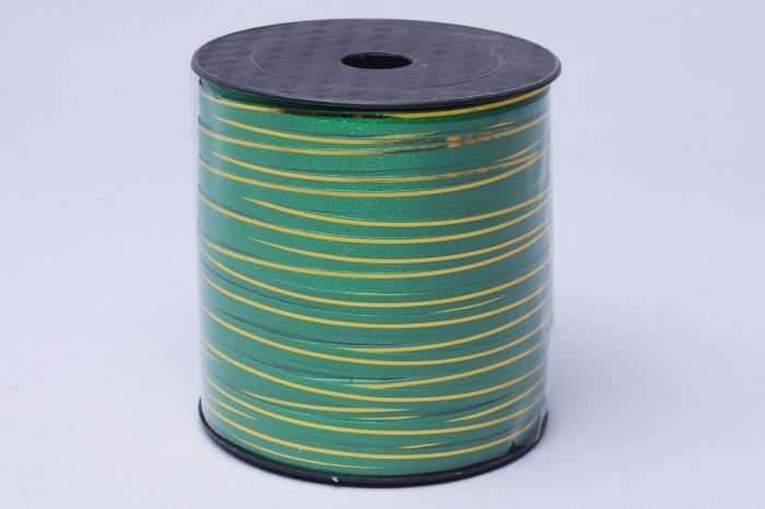 Лента упаковочная бобина 0,5см х 250м зеленая золотой полосой 1/1