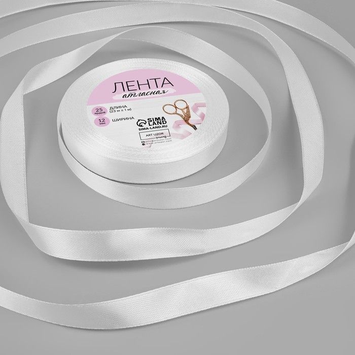 Лента атласная 12мм 23м белая 1/10 оптом и в розницу в Казани, цены в каталоге с доставкой