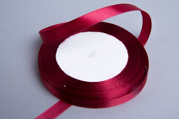Лента атласная 10мм 25м бордовая 1/10