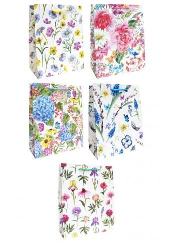 —Пакет подарочный бумажный (18х23х9) ламинир Яркие цветы, бабочки, птички 1/20