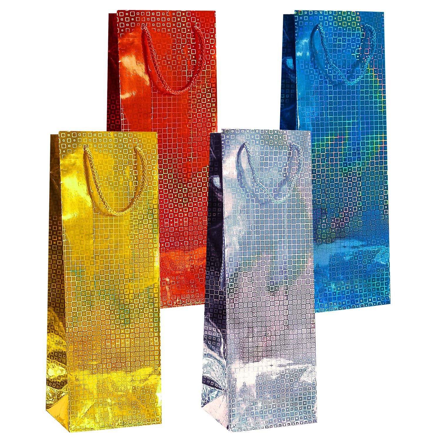 Пакет подарочный бумажный под бутылку (12,3x36,2x7,8) голография 1/360 оптом и в розницу в Казани, цены в каталоге с доставкой