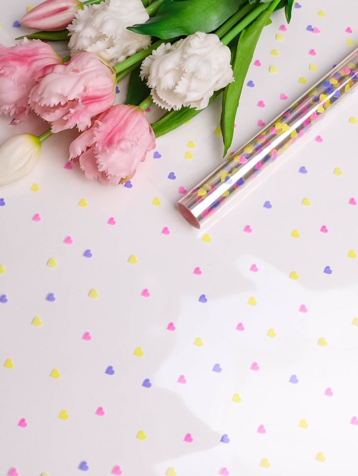 Ролик 70см х8м пленка полипропилен с рисунком Конфетти микс 1/10