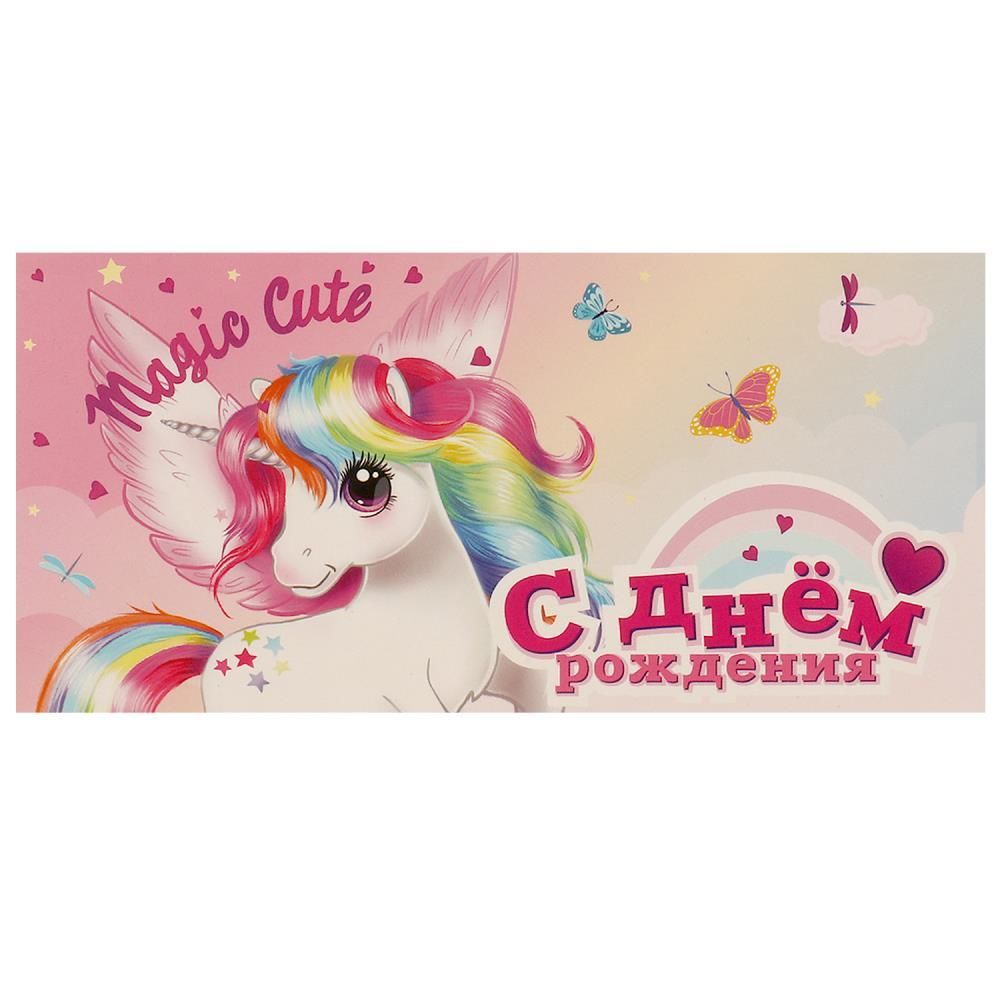 Конверт для денег 16,5x8см С Днем Рождения ! единорог модель 10/10