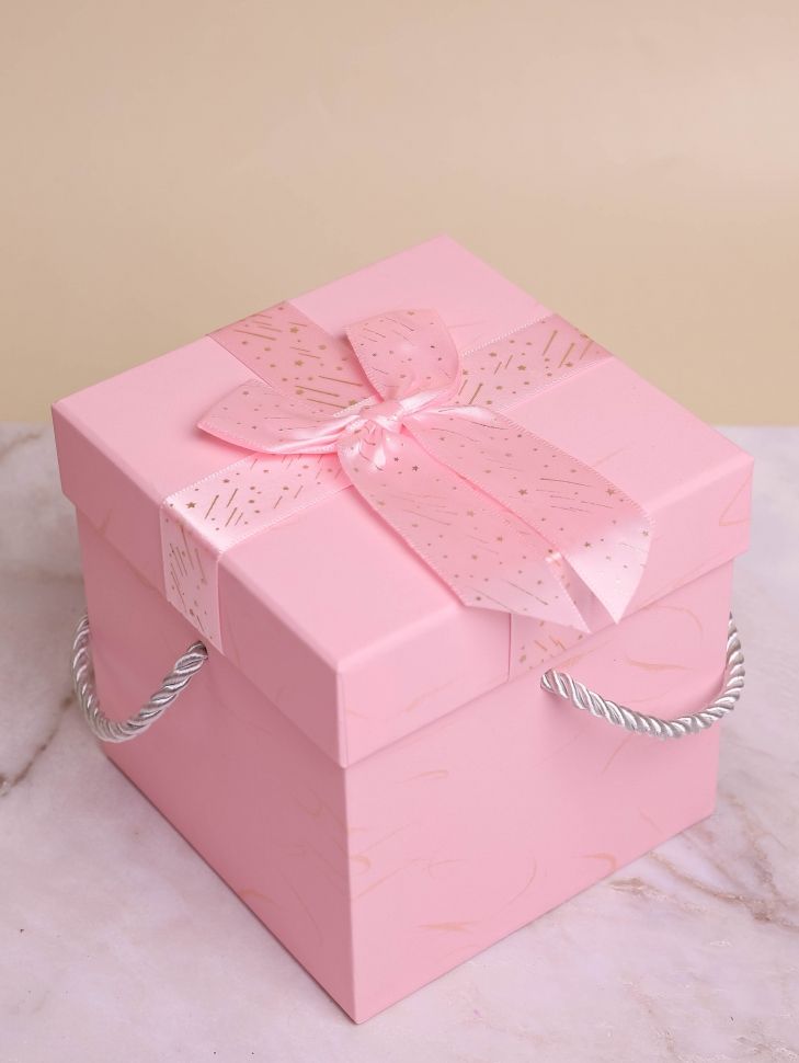 Подарочная коробка Квадрат 13х13х13см Звездное небо розовый 1/4 оптом и в розницу в Казани, цены в каталоге с доставкой
