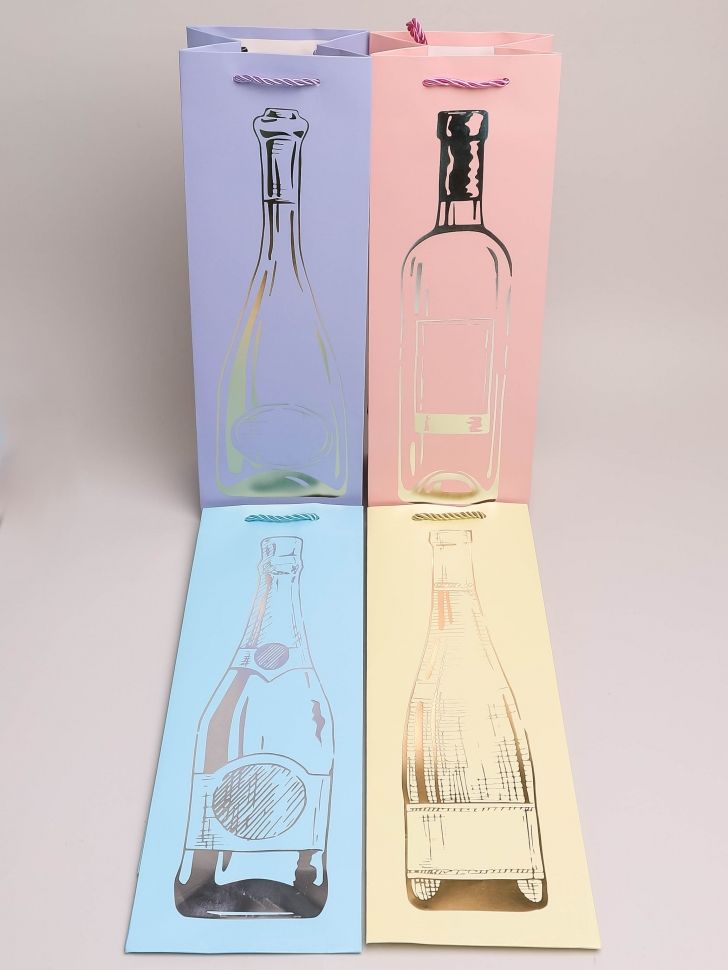 Пакет подарочный бумажный под бутылку (18х35х9) Пастель микс 1/12