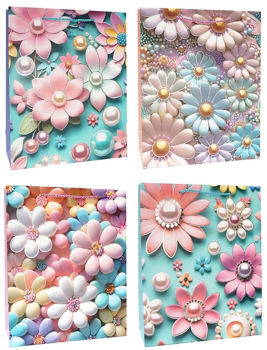 Пакет подарочный бумажный (18х24х8,5) Цветы 3D 1/12 оптом и в розницу в Казани, цены в каталоге с доставкой