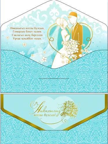 Конверт для денег 16,5х8см Никах Счастливая пара на тат. языке 10/10