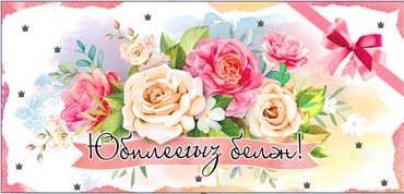 Конверт для денег 16,5х8см С Юбилеем! розы на тат языке 10/10 оптом и в розницу в Казани, цены в каталоге с доставкой