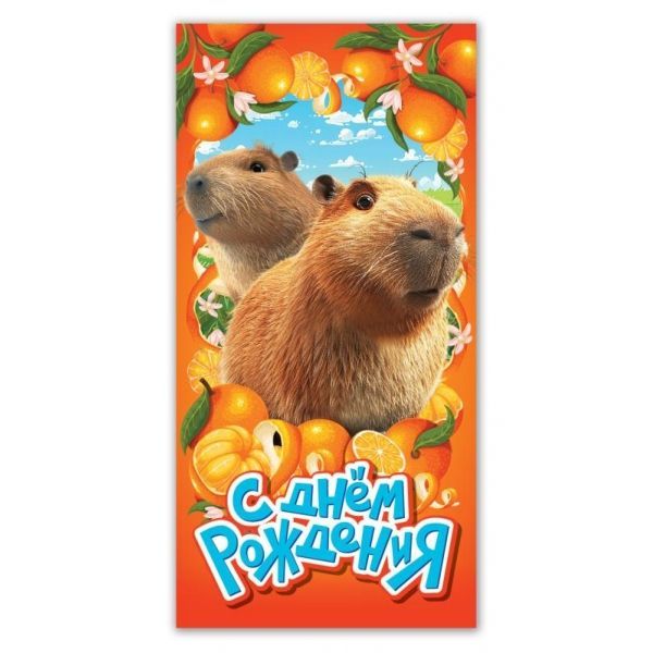 —Конверт для денег 16,5x8см С Днем Рождения капибара 10/10