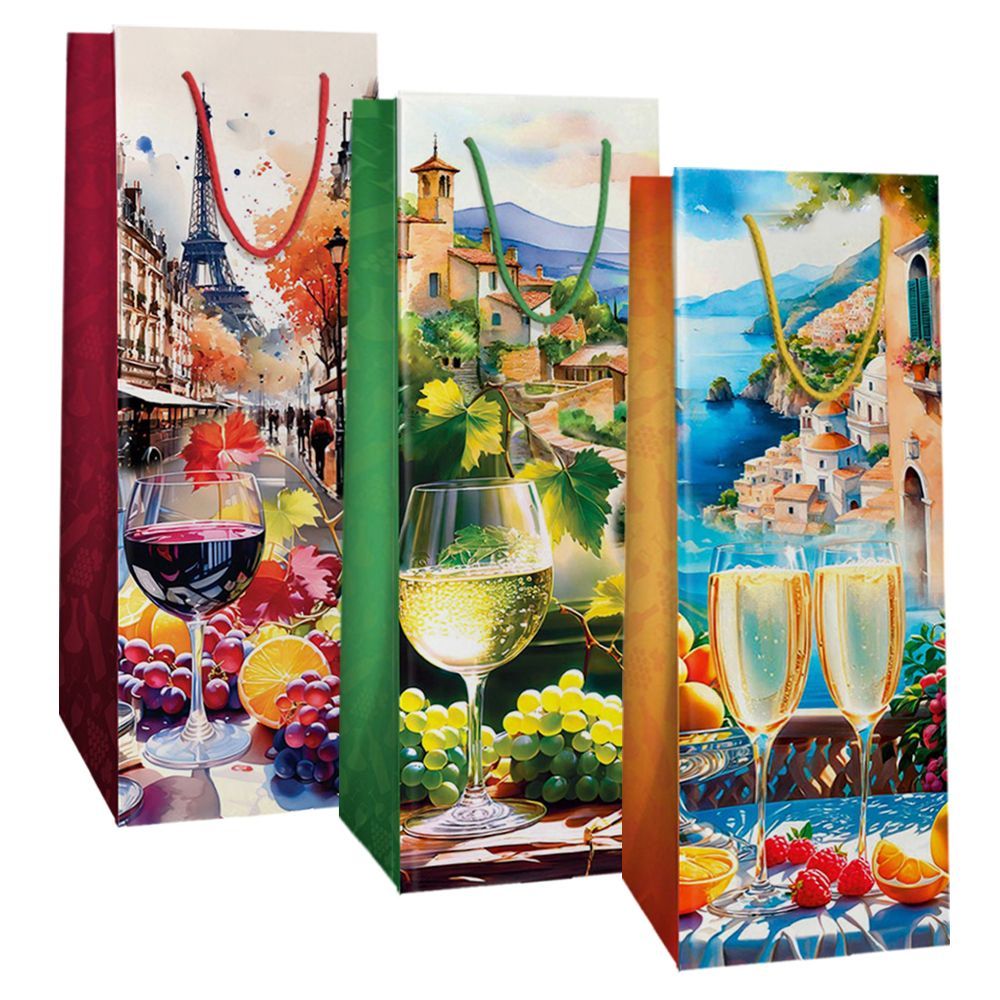 Пакет подарочный бумажный под бутылку (12,3х36х7,8) ламинир микс №6 1/12/360 оптом и в розницу в Казани, цены в каталоге с доставкой