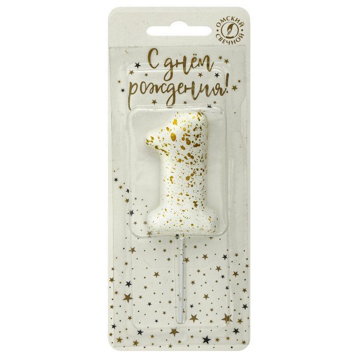 —Свеча для торта Белые брызги Цифра 1 1/30