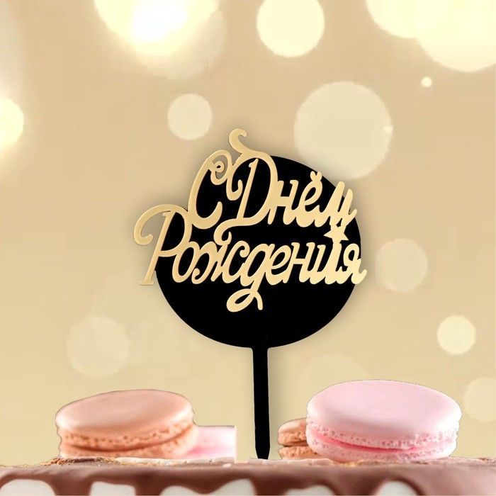 Топпер для торта С днем рождения черно-золотой 1/20 оптом и в розницу в Казани, цены в каталоге с доставкой
