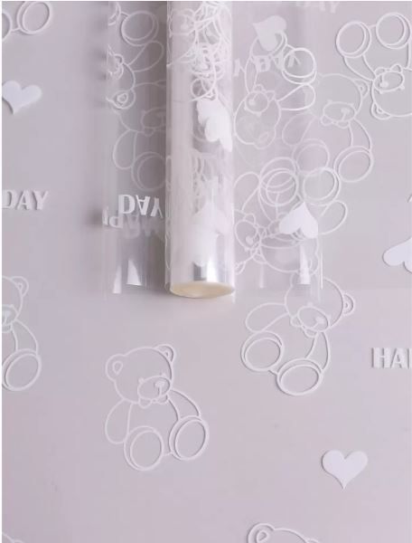 —Ролик 70см х8м пленка полипропилен с рисунком Мишки белый 1/10